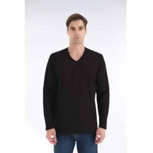 Erkek Pamuklu Sonbahar Kış Kalın Penye İki İplik V-Yaka Uzun Kollu Tişort - 1061 % 95 Pamuk % 5 Elastan