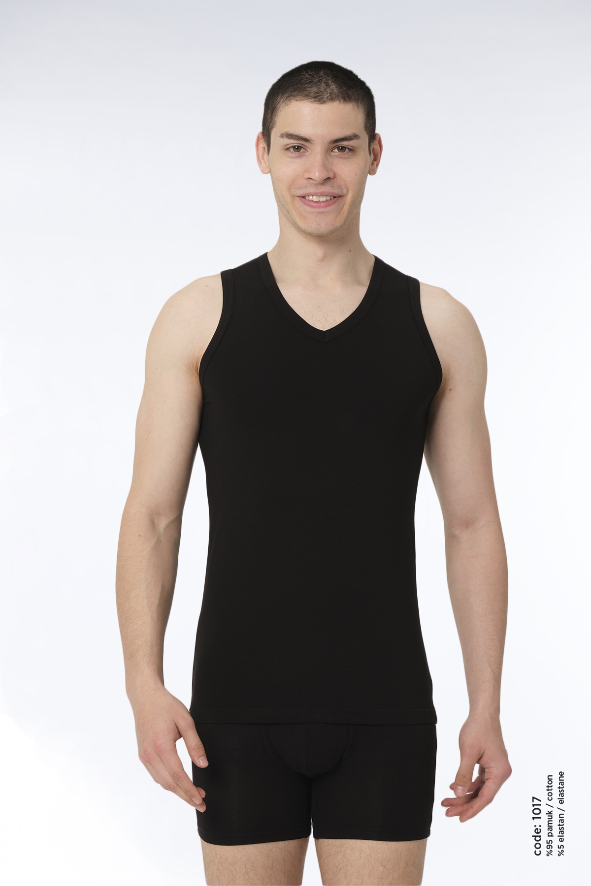 Erkek Pamuklu V-yaka Kolsuz Likralı Atlet  – 1017