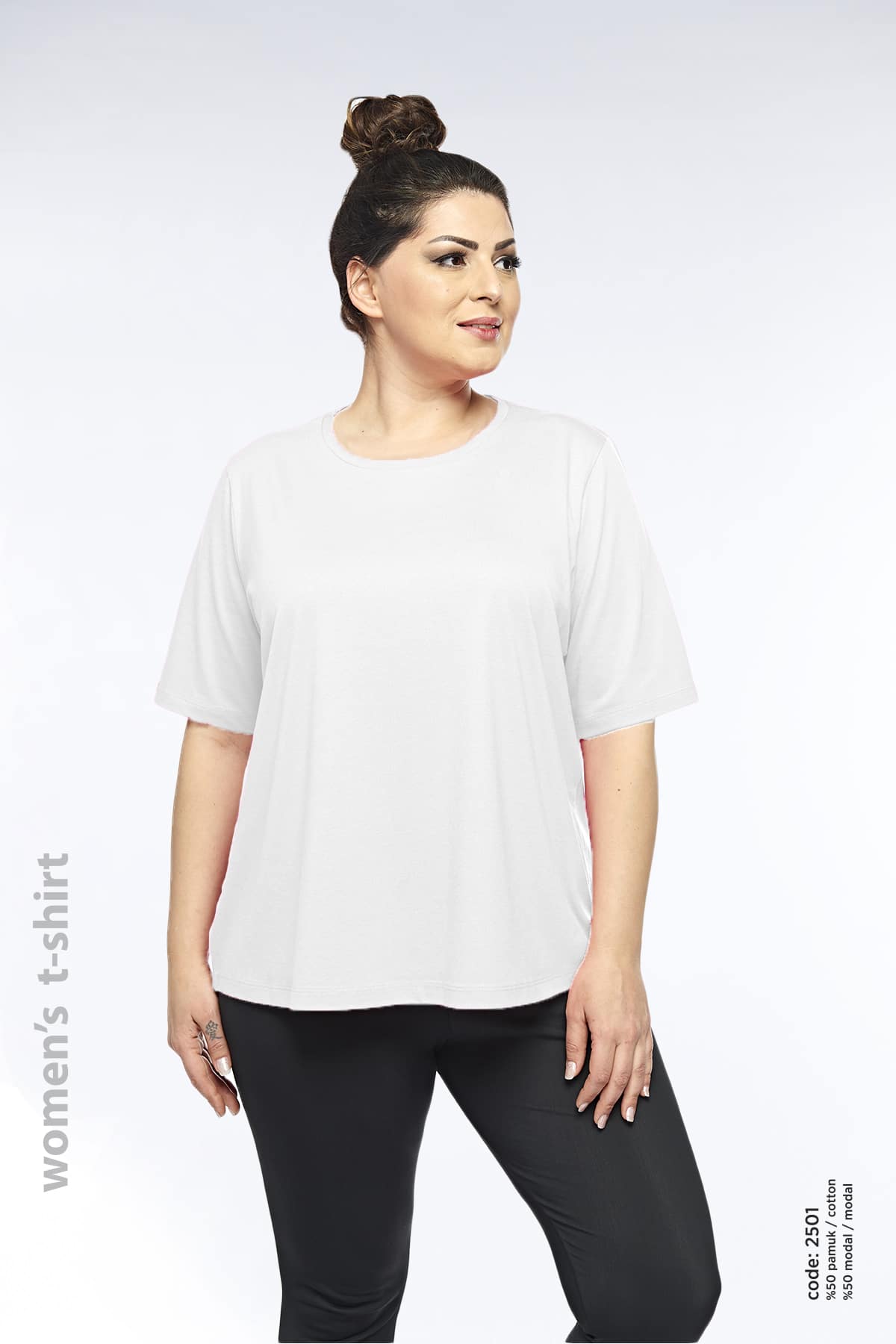 Kadın Pamuklu Modal Kısa Kollu Üst Plus Si̇ze T-shi̇rt – 2501