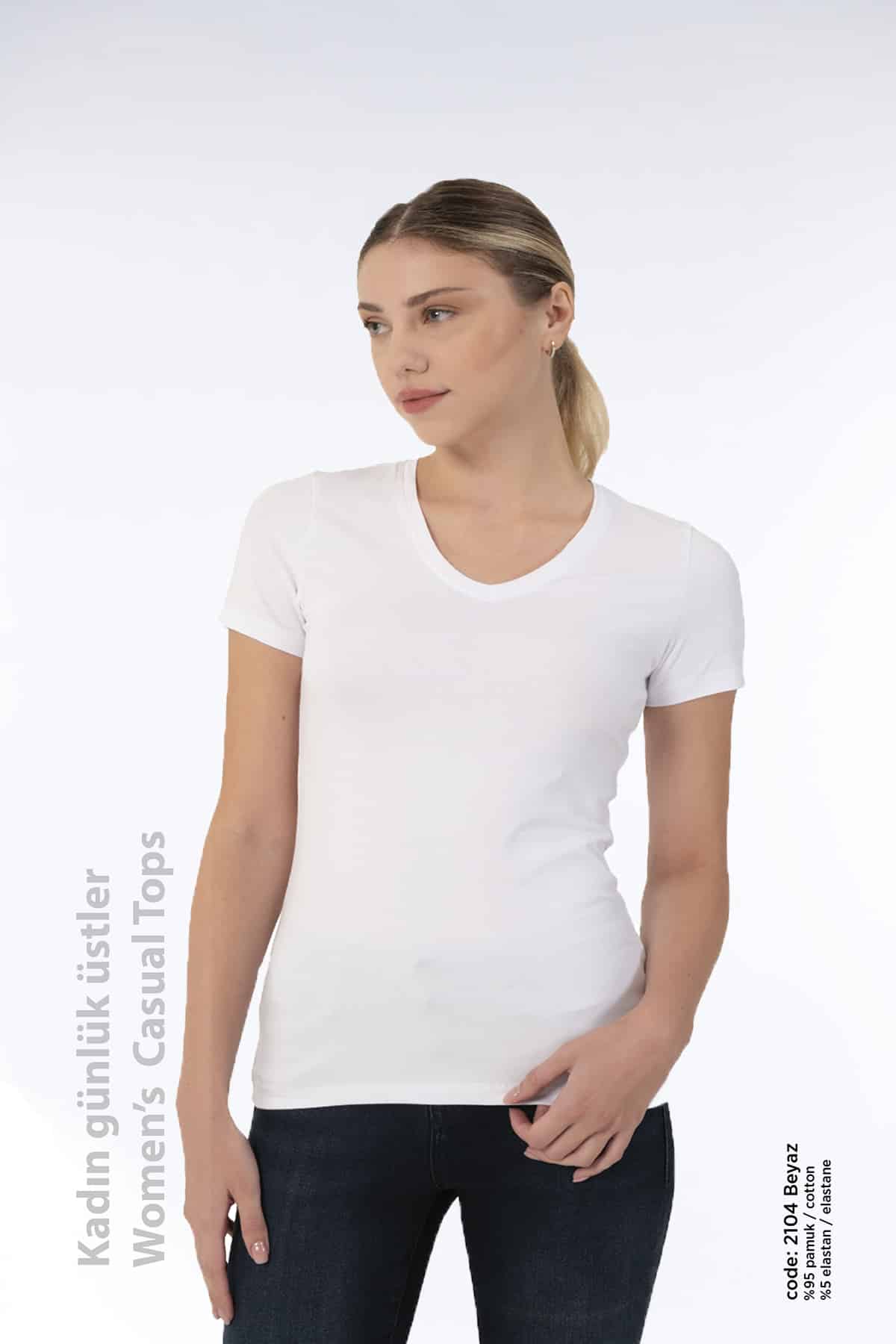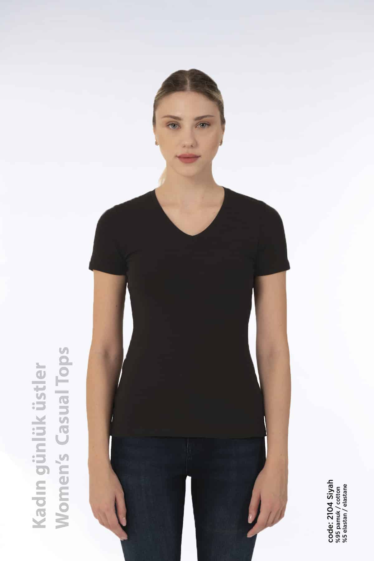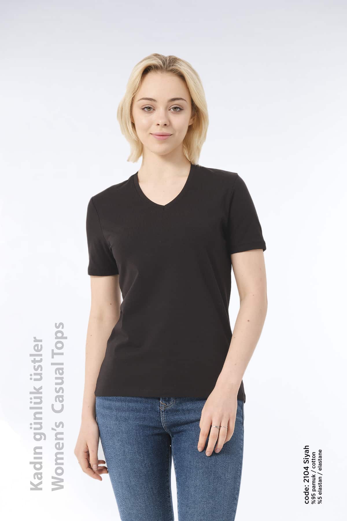 Kadın Pamuklu V-yaka Kısa Kollu Üst Likralı T-shi̇rt    6’Lı  – 2104