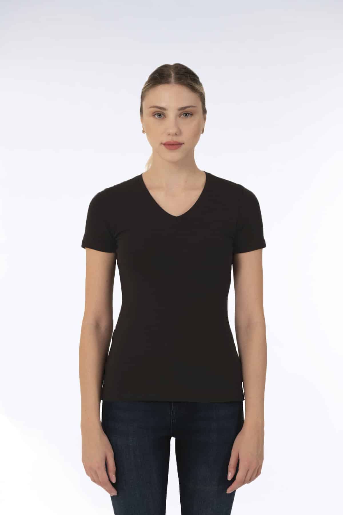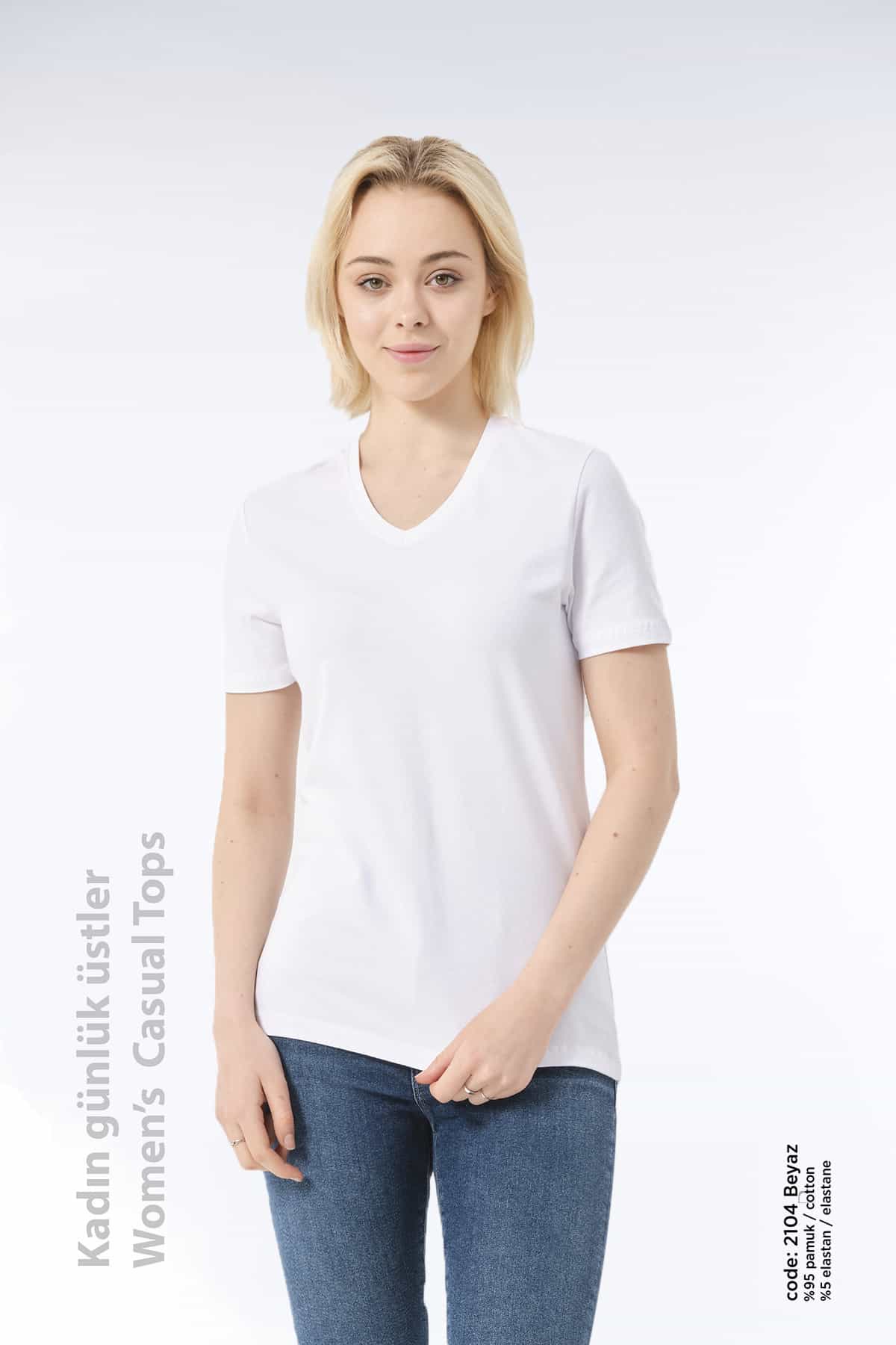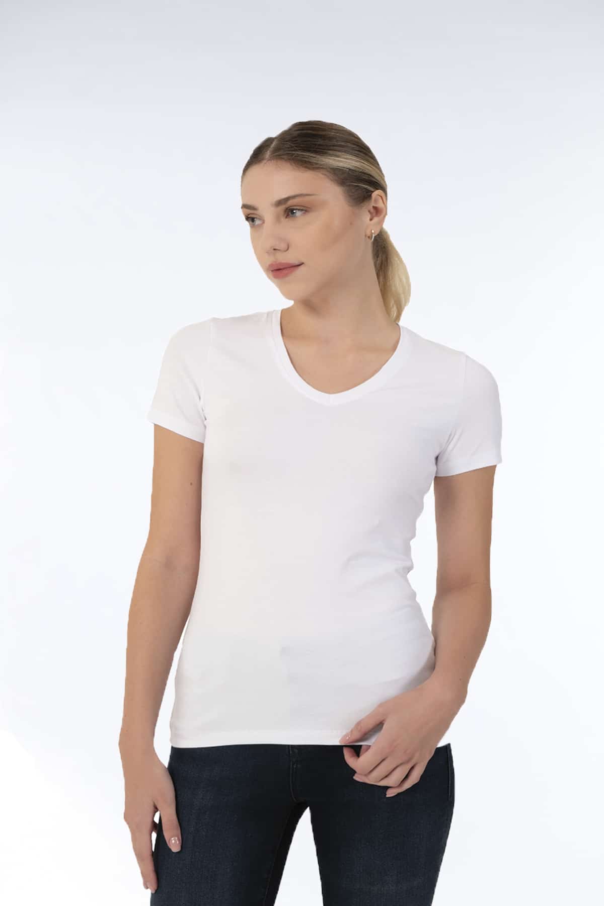 Kadın Pamuklu V-yaka Kısa Kollu Üst Likralı T-shi̇rt    6’Lı  – 2104