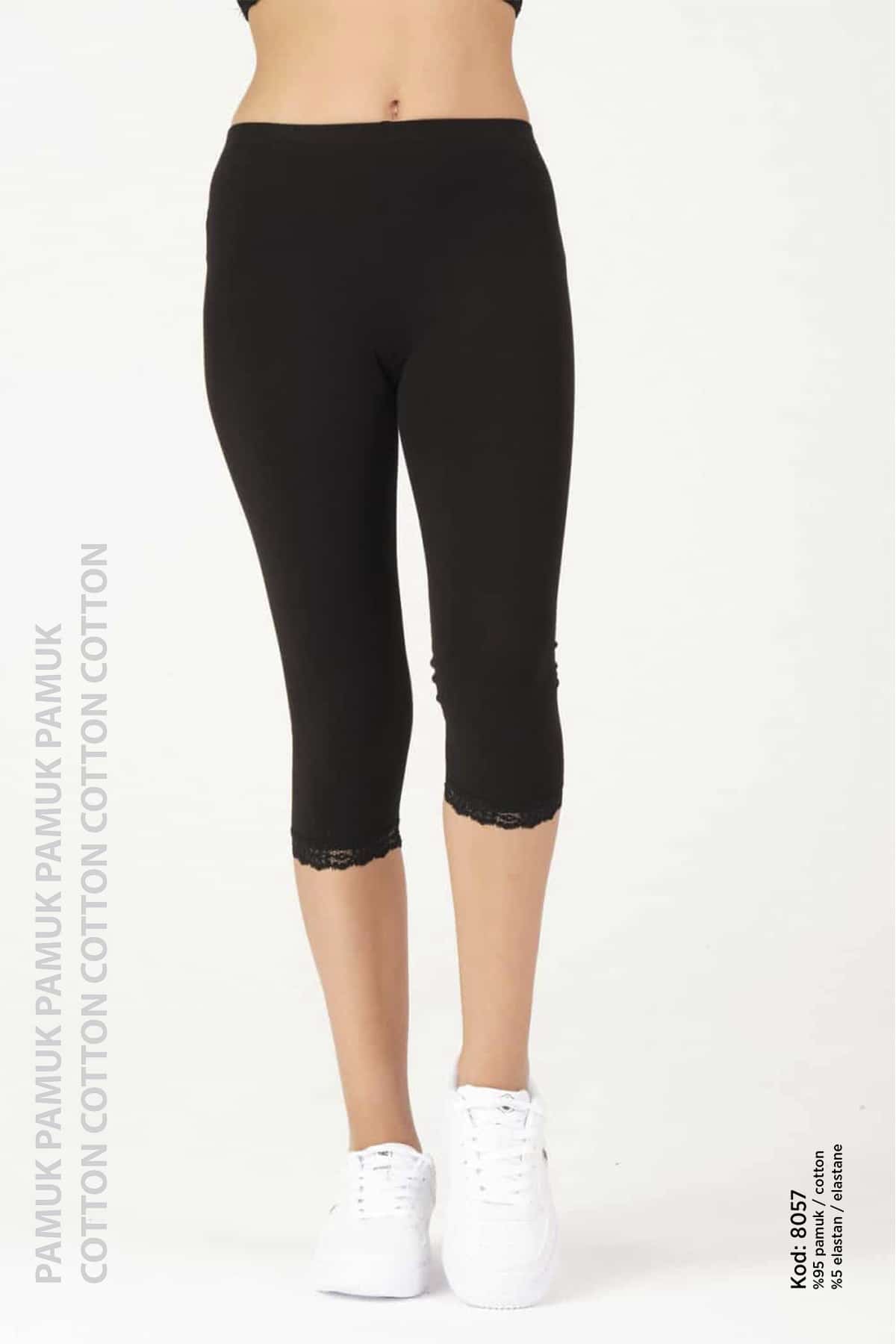 kız Çocuk Pamuklu Dız Altı Dantelli̇ Likralı Tayt – 8057